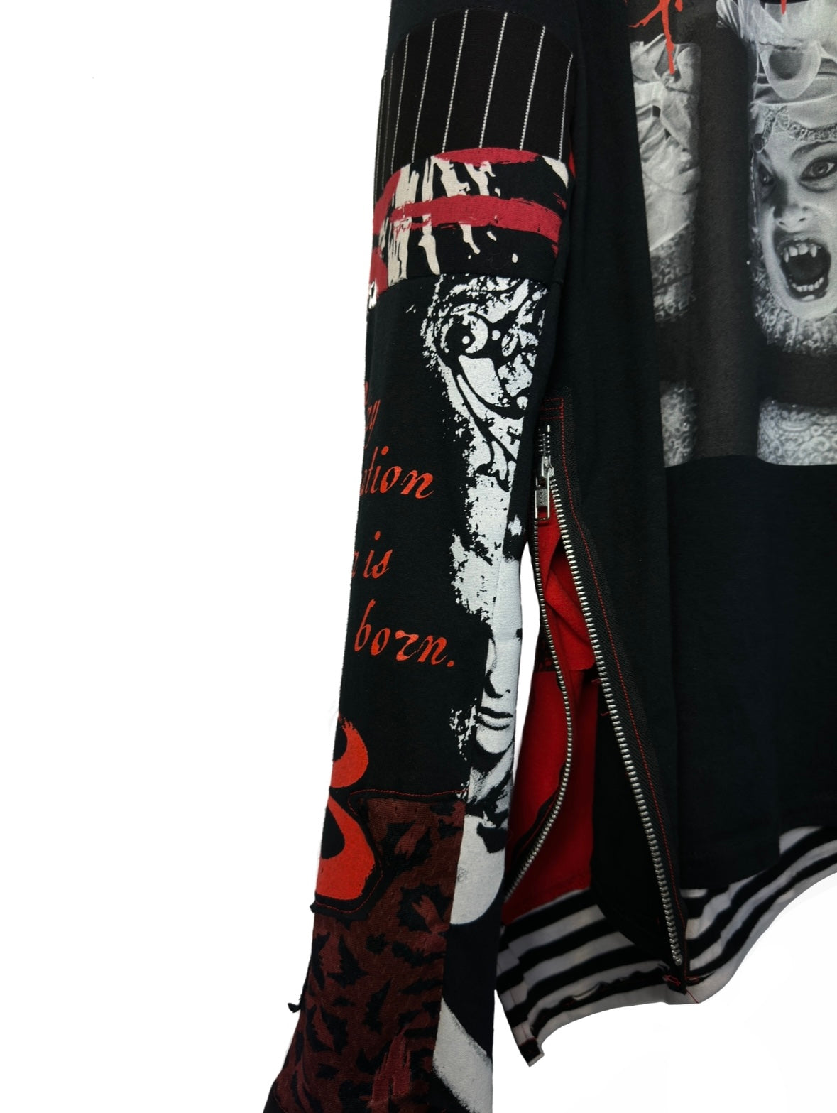 •  castle embroidery detail on sleeve
